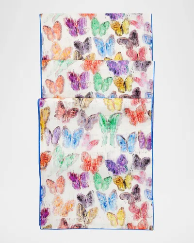 HUNT SLONEM Spring Butterflies Reversible Linen Table Runner, 15" X 108" In Multi Color