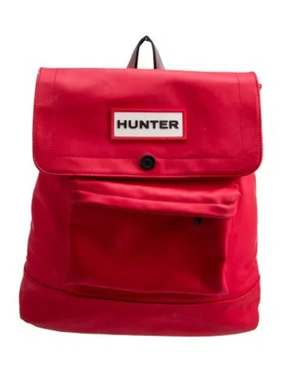 Hunter Backpack Red Leather Graphic Print Tonal Hardware Nylon Lining Snap Closure at Front Unfortunately, due to restrictions, this item may not be eligible for shipping in all areas. | Hunter Leather Backpack in Red