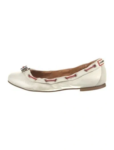 Pre-owned Leather Colorblock Pattern Ballet Flats In White