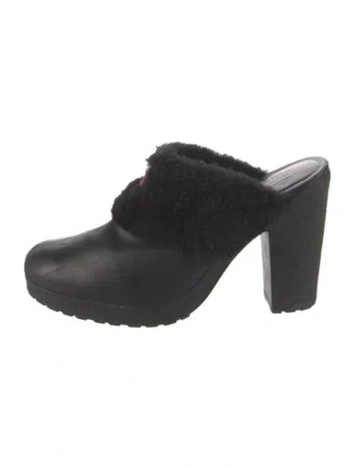 Hunter Leather Mules Black Round-Toes Platform Unfortunately, due to restrictions, this item may not be eligible for shipping in all areas. | Hunter Leather Mules in Black, Women's US 9 | 9