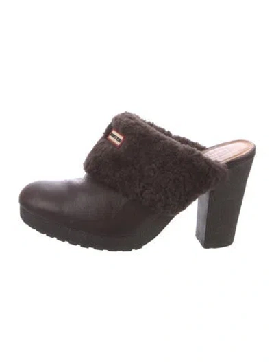 Hunter Leather Mules Brown Round-Toes Platform Unfortunately, due to restrictions, this item may not be eligible for shipping in all areas. | Hunter Leather Mules in Brown, Women's 8