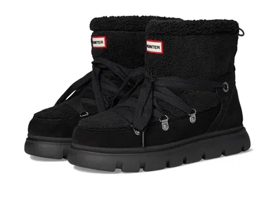 Hunter Moriah - Women's Boots : Black Faux Fur Suede : Note: Select your US size. Please be advised, the product and box will display UK, US and Euro sizing. For US sizing, both men's and women's sizing is displayed. Men's sizing is represented by M and women's sizing is represented by F. ; ; Ready for whatever the day brings, the Hunter Moriah booties are your go-to for all weather wear. Featuring a secure lace-up design and insulated to keep your feet warm. Plus, they are fully waterproof to keep you dry. The Moriah is the perfect wardrobe staple! ; Faux fur suede upper, textile faux fur lining, and polyurethane footbed. ; Back pull tab. ; Mid-calf style. ; Branding on the shaft. ; Round toes. ; Synthetic rubber outsole. ; Imported. Measurements: ; Circumference: 14 3 4 in ; Product measurements were taken using size 7, width M. Please note that measurements may vary by size. | Hunter Moriah Women's Boots Black Faux Fur Suede : 10 M