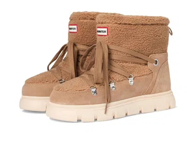 Hunter Moriah - Women's Boots : Medium Brown Faux Fur Suede : Note: Select your US size. Please be advised, the product and box will display UK, US and Euro sizing. For US sizing, both men's and women's sizing is displayed. Men's sizing is represented by M and women's sizing is represented by F. ; ; Ready for whatever the day brings, the Hunter Moriah booties are your go-to for all weather wear. Featuring a secure lace-up design and insulated to keep your feet warm. Plus, they are fully waterproof to keep you dry. The Moriah is the perfect wardrobe staple! ; Faux fur suede upper, textile faux fur lining, and polyurethane footbed. ; Back pull tab. ; Mid-calf style. ; Branding on the shaft. ; Round toes. ; Synthetic rubber outsole. ; Imported. Measurements: ; Circumference: 14 3 4 in ; Product measurements were taken using size 7, width M. Please note that measurements may vary by size. | Hunter Moriah Women's Boots Medium Brown Faux Fur Suede : 11 M