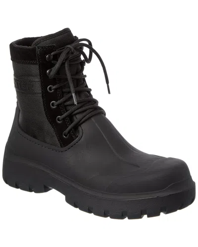 Introducing the Hunter Nylon & Rubber Boot, a stylish and rugged addition to any wardrobe. This British heritage brand combines modern innovation with timeless style to create all-weather products that are both functional and fashionable. Constructed with a black nylon, rubber, and leather upper, and featuring tonal hardware with a convenient pull-on loop, these boots are as durable as they are stylish. The lace-up closure ensures a secure fit, while the lightly padded insole provides added comfort.The rubber sole offers excellent traction, making these boots perfect for all types of weather conditions. The 2-inch heel and 1.5-inch platform add a subtle lift, while the 7-inch shaft and 12-inch boot circumference provide a classic chukka boot silhouette.Please note that all measurements are approximate and were taken from a size 9, so slight variations may occur. Imported for quality and authenticity, the Hunter Nylon & Rubber Boot is a must-have for any man looking to stay stylish and comfortable in any weather.