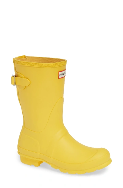 HUNTER Original Short Back Adjustable Waterproof Rain Boot In Yellow