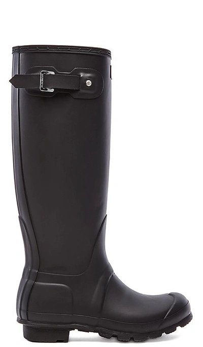 Hunter Original Tall Rain Boot in Black. - size 8 (also in 10) Hunter Original Tall Rain Boot in Black. - size 8 (also in 10) Rubber upper and sole. Shaft measures approx 14.5 H. Side buckle detail. HUNR-WZ4. WFT1000RMA. Born out of the British obsession to unearth something new, since 1856 Hunter has equipped the people who dare to find their own path