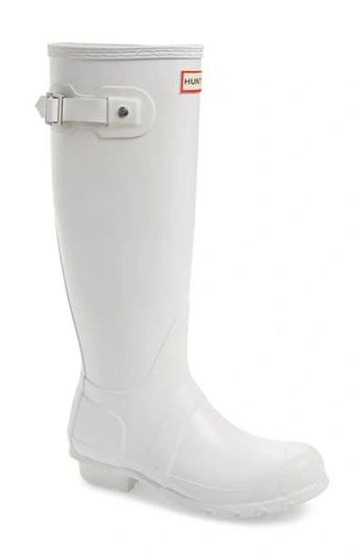 A classic finish perfects a puddle-proof rubber boot finished with a traction-gripping sole. Subtle tonal motifs circle the shaft, while an adjustable buckle at the side adds interest. Style Name: Hunter 'Original Tall' Rain Boot (Women). Style Number: 585518 2. Available in stores.