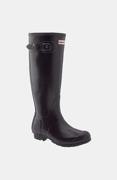 A classic finish perfects a puddle-proof rubber boot finished with a traction-gripping sole. Subtle tonal motifs circle the shaft, while an adjustable buckle at the side adds interest. Waterproof: protects against rain, puddles and slush to keep feet dry in wet conditions 1 1/2" heel height (size 9) 16" boot shaft height; 15 1/2" calf circumference In hot or humid weather, natural latex rubber releases a protective wax film; simply wipe it off with a damp cloth A pristine finish and shine is easily restored with regular use of Hunter Boot Buffer or Instant Boot Shine Rubber upper/textile lining/rubber sole Imported Women's Shoes