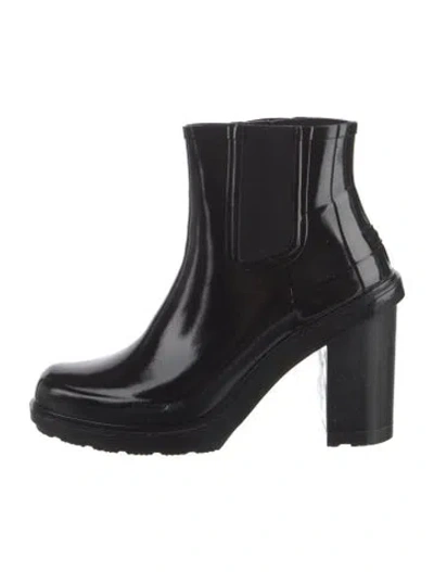 Hunter Rubber Ankle Rain Boots Black Round-Toes Platform | Hunter Rubber Rain Boots in Black, Women's US 7 | 7