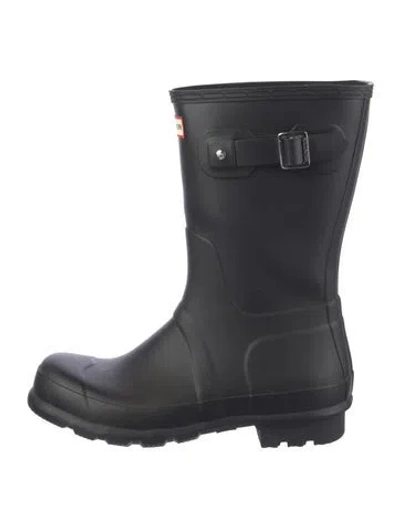 Hunter Rubber Mid-Calf Rain Boots Black Round-Toes | Hunter Rubber Rain Boots in Black, Men's 10