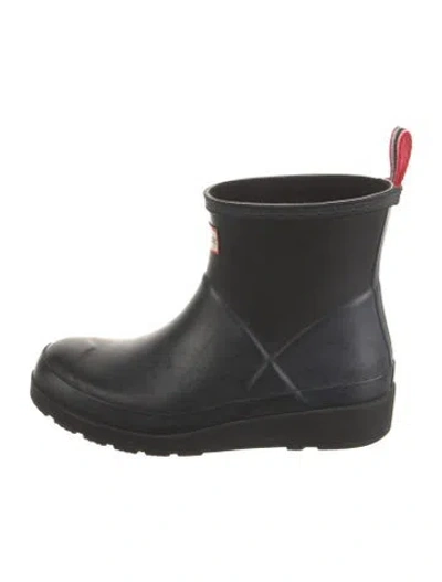 Hunter Rubber Ankle Rain Boots Black Round-Toes Platform | Hunter Rubber Rain Boots in Black, Women's US 8 | 8
