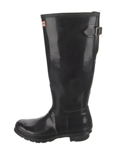 Hunter Rubber Knee-High Rain Boots Black Round-Toes Buckle Closure at Sides | Hunter Rubber Rain Boots in Black, Women's US 9 | 9