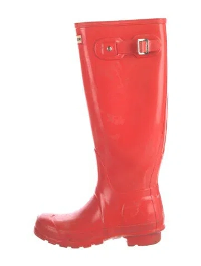 Hunter Rubber Knee-High Rain Boots Red Round-Toes Buckle Closure at Sides | Hunter Rubber Rain Boots in Red, Women's US 5 | 5