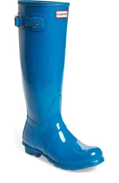 A classic finish perfects a puddle-proof rubber boot finished with a traction-gripping sole. Subtle tonal motifs circle the shaft, while an adjustable buckle at the side adds interest. Color(s): aubergine, azure, bitter chocolate, black, black matte, bright coral, bright peacock, bright pink, dark earth blue, dark ion pink, dark olive, dark slate, denim, fuchsia, green, green matte, hunter green, jade, lilac, lipstick pink, marine, military red, navy, navy matte, new green, ocean, ocean blue, orange, pale blue, pale mint, peppercorn, pink sand, pumpkin, purple urchin, raspberry, rhodonite pink, silver, silver/ silver, sky blue, succulent green, tent red, violet, white, yellow, yellow/ yellow. Brand: HUNTER. Style Name: Hunter 'Original Tall' Rain Boot (Women). Style Number: 585518. Available in stores.