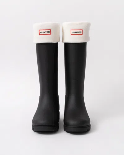 Hunter Fleece Tall Boot Sock in Hunter White Certified vegan 100% Recycled polyester Designed to fit Hunter Tall Wellies PVC logo branding Updated improved fit for added comfort Sizes run slightly large - Hunter recommends the following sizing for wearing with your Original Tall Hunter Boots. HXRU0025251-HWT