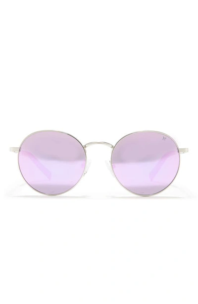 HURLEY Small Enamel Accented Round Sunglasses In Lilac Mirror