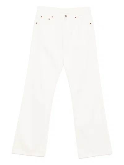 white cotton concelaed fly and button fastening classic five pockets tonal stitching