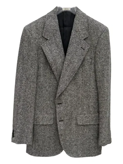 HUSBANDS Herringbone Blazer In Gray