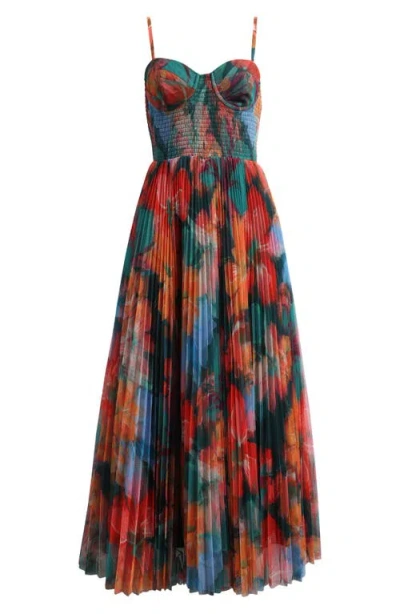 HUTCH Smocked Tulle Gown In Multi