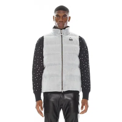 This light blue puffer vest is the perfect statement piece with fiberoptic lights woven into the fabric illuminating the piece in a myriad of colors with just the click of a button. Whether strobing lights are your style or a simple solid color, this vest will draw everyone's attention. Vest details include printed logo on the chest and back, 2 zip pockets, and YKK zipper with triangle pull tab. - Full zip -2 zip pockets
