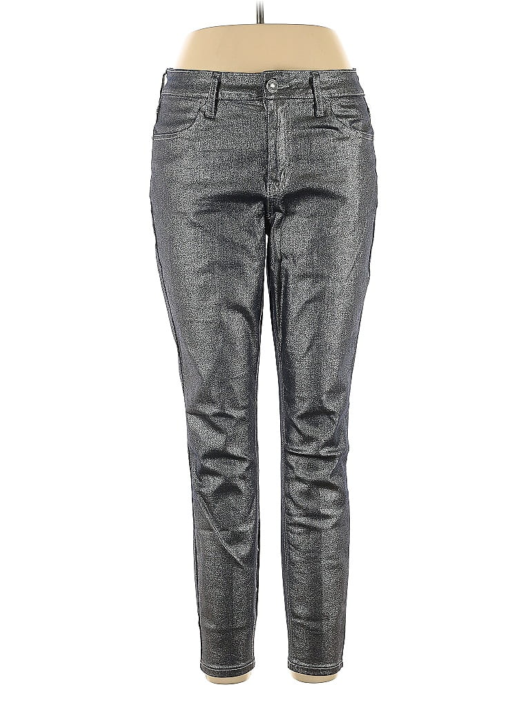 Hydraulic Jeans, Size: 12. Item Details: Silver, Metallic Pattern, Boyfriend, Regular, High Rise, Junior Bottoms, Spandex/Viscose/Polyester
