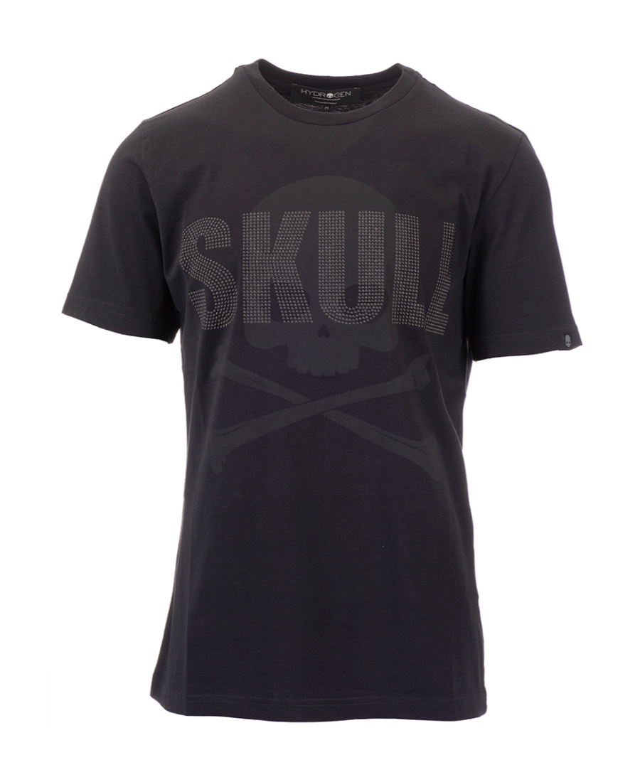 Skull T-shirt, round neck, short sleeves, straight hem.
