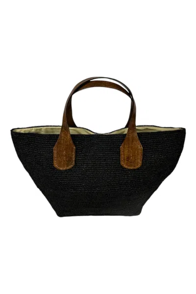 Borsa Ibeliv Tokyo II in rafia. Modello shopping, chiusura con bottone a pressione, 4 tasche interne, manici in pelle lunghi 18 cm, fodera in cotone biologico. Materiale: 100% rafia naturale. Dimensioni: 55x29x29 cm.