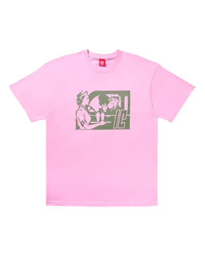 The Script t-shirt features a front print displaying a retro diner drive-In graphic. Pink Screen print graphic at front IC signet logo at back 100% Cotton