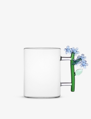 Being based in Milan – a hub where artists and designers converge – has its benefits. For one, it means that the Italian homeware label Ichendorf can cross paths with talented creatives when reinventing its everyday glassware. Each handmade jug, tumbler and vessel is made in collaboration with designers from across the world, sculpted from borosilicate glass and hints at the natural world, whether wildlife in an oak-filled forest or snorkelling into the depths of the sea.| Ichendorf glass mug100% glassDesigner: Alessandra BaldereschiBotanica collection, floral handle, handmade, flame workedHeight 10cmDishwasher safe