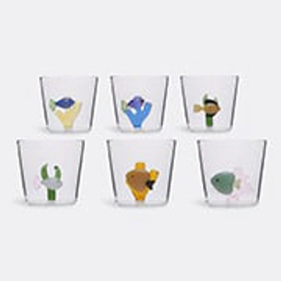 Six tumblers are united by multicoloured illustrations of fish on their surfaces in Alessandra Baldereschi's 'Marine Garden' collection for Ichendorf Milano. Lampworked and hand-made from borosilicate glass, the tumblers are a light-hearted step into the depths of an uncontaminated and remote kingdom.