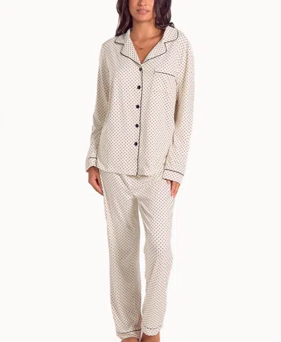 Women's Brushed Micro Stretch Knit Long-sleeve Pajama Set In White