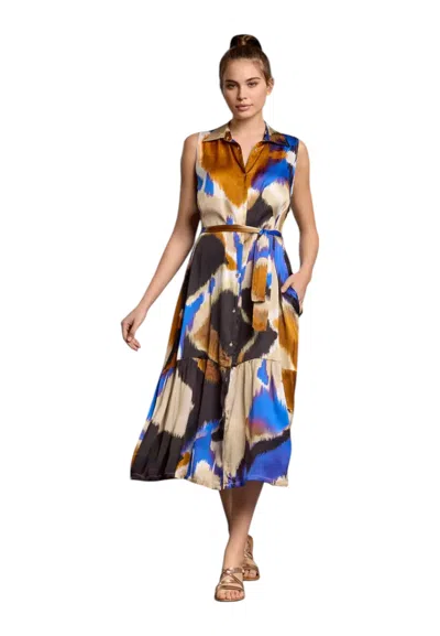 IconiqueWomen's fashioned dress with fantasy print, central closure with buttons and V neckline, removable waistband. .Composition100% Modal-The model is 170cm tall and wears a size S