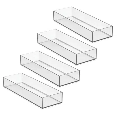 Stackable Drawer Organizer 4 ct. Features: VERSATILE STORAGE Eliminate challenging drawer clutter for good with our iDesign Clarity Drawer Organizer; This elevated organizer transforms cluttered drawers by keeping contents accessible and contained and fits neatly inside standard-sized drawers; The stackable design allows you to make the most of any drawer space, utilizing wasted space inside deep drawers or on countertops; Set of 4. FUNCTIONAL DESIGN This beautifully crafted drawer organizer is sure to suit all your storage needs by accommodating items of different sizes from utensils to measuring spoons to small kitchen tools and more; Straight sides slide flush against other organizers so there are no gaps or wasted space, creating an organizational system that meets your storage needs; When used in conjunction with other organizers, easily create a configuration that suits your needs for a sleek, clutter-free look. DURABLE & STYLISH This slim, elongated organizer creates a neat place for all your most-used kitchen tools while being versatile enough to use in any room of your home; The clear design keeps contents accessible and visible, bringing a clean, clutter-free look anywhere its placed; Use as a makeup organizer in the bathroom, as a desk organizer in the office, or a way to sort hobby supplies in the craft room. QUALITY CONSTRUCTION - Constructed of durable, shatter-resistant plastic, this organizer stands up to daily use and is easy to clean with mild soap and water; Hand wash only; Do not place in the dishwasher. RIGHT-SIZED STORAGE Drawer organizer measures 12 x 4 x 2 high. Features: FUNCTIONAL DESIGN This beautifully crafted drawer organizer is sure to suit all your storage needs by accommodating items of different sizes from utensils to measuring spoons to small kitchen tools and more; Straight sides slide flush against other organizers so there are no gaps or wasted space, creating an organizational system that meets your storage needs; When used in conjunction with other organizers, easily create a configuration that suits your needs for a sleek, clutter-free look. Features: DURABLE & STYLISH This slim, elongated organizer creates a neat place for all your most-used kitchen tools while being versatile enough to use in any room of your home; The clear design keeps contents accessible and visible, bringing a clean, clutter-free look anywhere its placed; Use as a makeup organizer in the bathroom, as a desk organizer in the office, or a way to sort hobby supplies in the craft room.