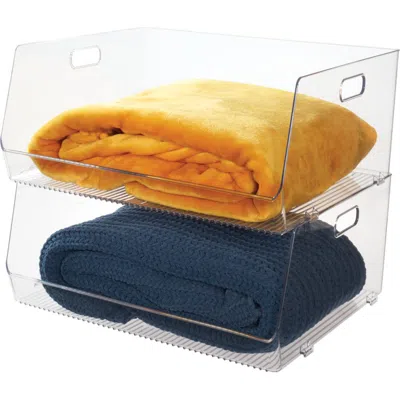 Reduce shelf clutter with the Stackable Open-Front Storage Bin. These open-front bins stack vertically, allowing you to use multiple units together for custom storage while conserving space. The wide, front cutout grants immediate reach-in access, so your belongings are always easily accessible. The see-through design allows you to quickly inventory contents for quick visibility. Designed with versatility in mind, these open-front storage bins organize an array of household essentials to suit all your storage needs. EASY ORGANIZATION - A large cutout offers one-handed access to your belongings for quick visibility and easy accessibility STACKABLE - Its stackable design maximizes space, and two easy-grip cutout handles make it easy to transport from cabinets to countertops with ease EASY ORGANIZATION - This functional catchall works beyond the kitchen and is ideal for organizing household odds and ends, from playrooms to bedrooms and beyond QUALITY CONSTRUCTION - Made of durable BPA-free plastic that is shatter-resistant; Food safe; EASY CARE - Clean with mild soap and water; Do not place in dishwasher MADE TO FIT - Open-front bin measures 15.25" x 19.43" x 8.25" high / 38,74 cm x 49,35 cm x 29,96 cm