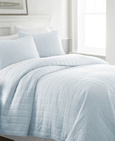 IENJOY HOME Homespun Home Spun Premium Ultra Soft Square Pattern Quilted Coverlet Set In Pale Blue