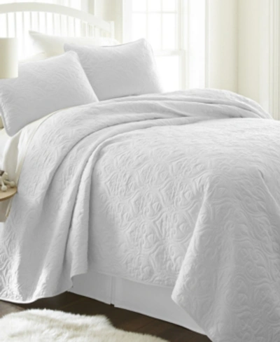 IENJOY HOME Ultra Soft Damask Pattern Quilted Coverlet Set, King In White