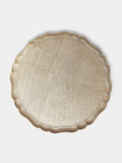 Handcrafted in Japan, Ifuji's large, round Italian maple-dyed plate is beautifully formed with a softly scalloped rim. A water-resistant mordant derived from plant colourant is used in the ancient Japanese dyeing process, creating natural, earthy and individual characteristics in the wood grain and finish.