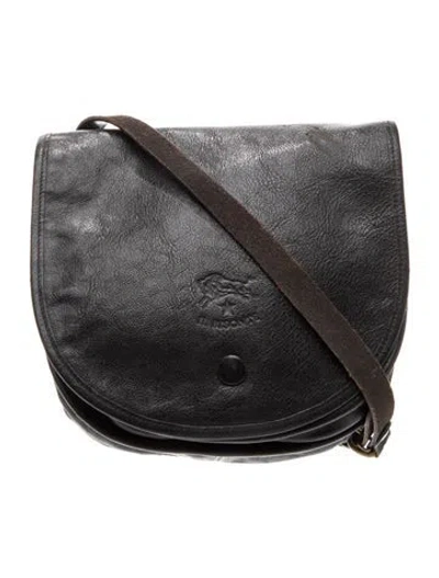 Il Bisonte Messenger Bag Black Leather Gold-Tone Hardware Unlined Snap Closure at Front Unfortunately, due to restrictions, this item may not be eligible for shipping in all areas. | Il Bisonte Leather Messenger Bag in Black