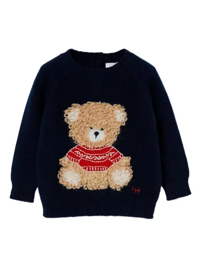 IL GUFO Babies' 泰迪熊贴花上衣 In Blue