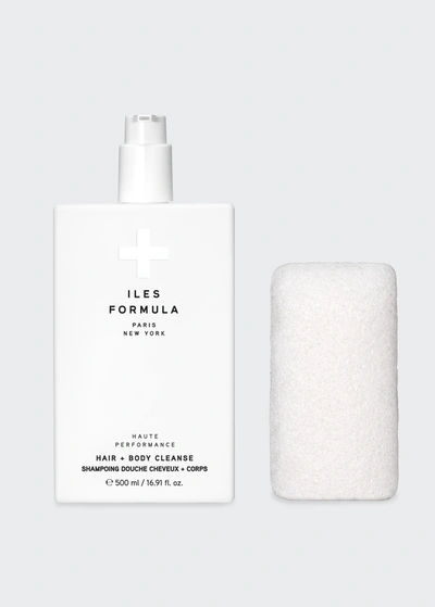Iles Formula Hair + Body Cleanse with Body Sponge A "wash & go", providing customers a luxurious hair experience together with a soft, silky after-cleanse on the skin. Perfect for the home, gym and spa, this formula addresses hair-, scalp-, and skin-aging at a cellular level. An all-in-one vitamin compound of B3, B5, B6, C, and E are all vitamins that are known to have a beneficial, protective effect on the skin and scalp whilst also strengthening the hair. The formula is infused with our...
