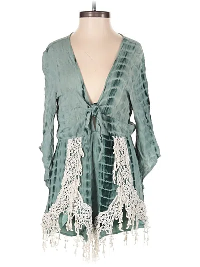 Illa Illa Romper, Size: Small. Item Details: Teal, Plunge Neckline, 3/4 Sleeve, Women's Dresses, 100% Rayon