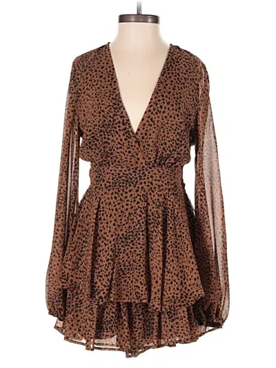 Illa Illa Romper, Size: Small. Item Details: Brown, Animal Print Pattern, Plunge Neckline, Long Sleeve, Women's Dresses, 100% Polyester
