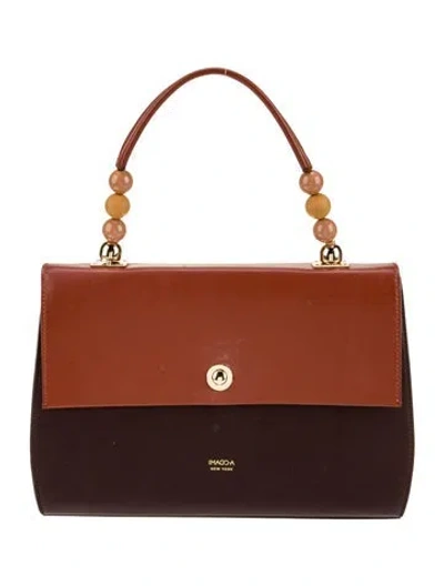 IMAGO-A Top Handle Bag Brown Leather Colorblock Pattern Gold-Tone Hardware Flat Handle Grosgrain Lining Flap Closure at Front Unfortunately, due to restrictions, this item may not be eligible for shipping in all areas. | IMAGO-A Leather Top Handle Bag in Brown