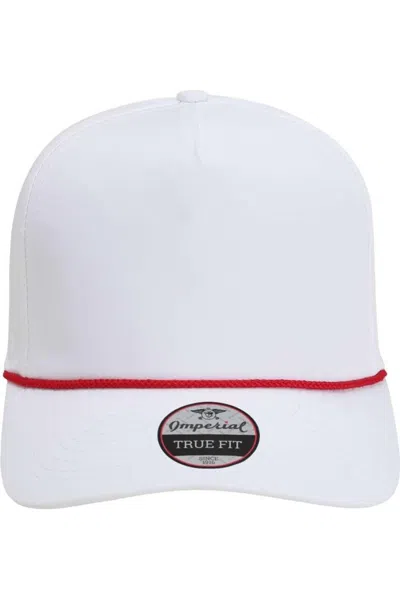 97/3 polyester/spandex, performance fabric. Structured, five-panel, mid-profile. Pre-curved visor. Retro fit with contrasting braid. Performance sweatband. Imperial woven label by plastic snap closure.