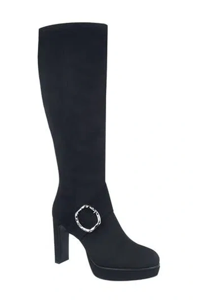 A chunky block heel and subtle platform elevate a sleek, knee-high boot crafted from supple faux-leather in a round-toe silhouette. 3" heel Synthetic upper, lining and sole Imported