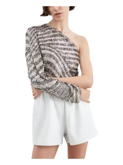 A long sleeve top you can wear with denim, skirts, well.just about anything!Sleeveless asymmetrical garment with draped. Wrap-style front. Horizontal stripes in black, white, and grey. Soft, textured knit fabric for a cozy look. True to size. 100% Polyester.