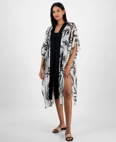 INC INTERNATIONAL CONCEPTS Jungle-print Open Duster Cover-up With Shine, Exclusively At Macy's In White