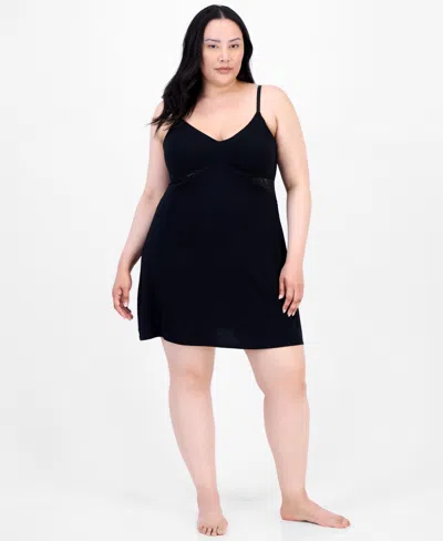 INC INTERNATIONAL CONCEPTS Plus Size Lace-cutout Chemise, Exclusively At Macy's In Black