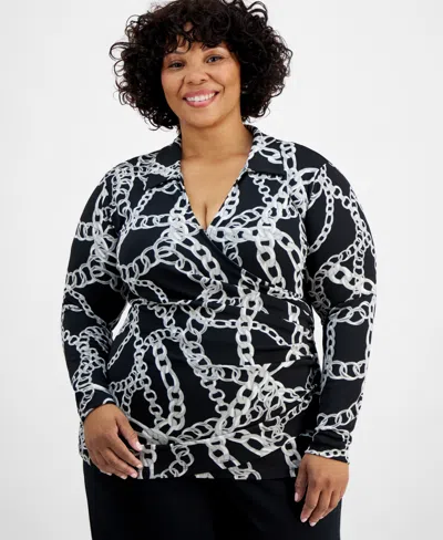 Plus Size Printed Faux-wrap Top, Created For Macy's In Kari Combo
