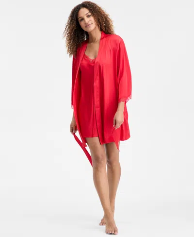 INC INTERNATIONAL CONCEPTS Women's Lace-trim Stretch Satin Robe, Created For Macy's In Multi